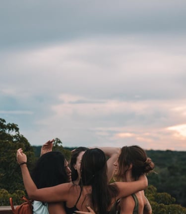 Entre mulheres na mesma sintonia, você vamos encontrar momentos de leveza, alegria e silêncio compartilhado. Vamos caminhar entre o verde, ouvir o vento tocar as árvores, sentir a terra firme sob os pés. Vai rir, refletir, se emocionar e se abrir para novas experiências que despertam os sentidos e acalmam a alma.